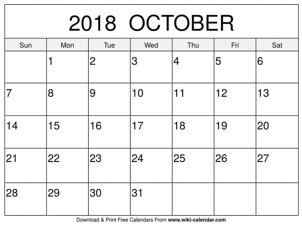 One of the Best methods to find free and high-quality printable calendar october 2018 downloads is to start by seeking online. The internet is home to a wide variation of websites that offer free printable calendar october 2018 downloads, along with templates, coloring pages, and more.